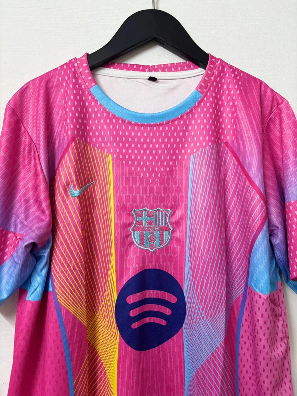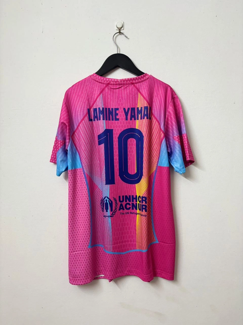 Lamine Yamal FC Barcelona Alternative Third Kit 2025-26 in striking pink! This unique jersey features a half sleeve and round neck design, showcasing Yamal’s dynamic style. Made in our state-of-the-art plant, this kit boasts high-quality details and vibrant sublimation printing. Perfect for Barcelona fans and Yamal enthusiasts, this authentic jersey celebrates Blaugrana pride with a bold twist. Ideal for everyday wear or match-day spirit, this jersey combines style, comfort, and team loyalty. Show off your Barcelona passion with premium quality and authentic details. Stand out with this amazing pink jersey!